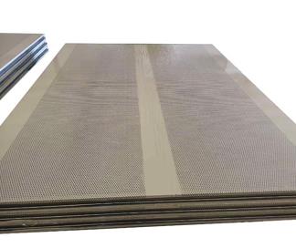 手工消音91视频APP污软件板是通过0.5~0.8mm厚彩钢板、镀锌板、铝合金板冲微孔处理而成,微孔直径2.5mm,中心孔距5mm,排列度角60度,外表面由0.5mm-0.8mm厚的彩板或镀锌板、铝合金板等组成;消声芯材料由消音岩棉或消音玻璃棉组成,消音岩棉或消音玻璃棉与玻璃纤维布粘结作防尘处理,并用专用胶水粘结;侧围为镀锌龙骨框架,板与板之间的连接采用中字型铝合金。